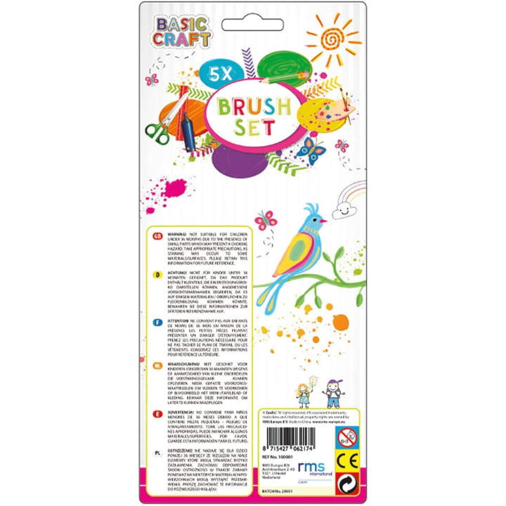 Комплектът четки за боядисване Grafix от 5 части е практичен начален комплект за млади художници и творчески хобита, които искат да открият забавлението на рисуването и изработването. Комплектът съдържа пет четки с разнообразни размери и форми, които улесняват изпробването на различни техники на рисуване - от широки мазки до фини детайли. Подходящи както за деца на възраст над 3 години, така и за възрастни, четките са предназначени за обща употреба в занаятите и могат да се използват с бои за училищни проекти, декорации "Направи си сам" и творчески занимания. С леки дръжки и косъмчета, които осигуряват гладко покритие, комплектът предлага гъвкавост и лекота на използване на достъпна цена. Цветната опаковка и семплият дизайн го правят особено привлекателен за деца, като същевременно е практичен за начинаещи и случайни любители художници. Независимо дали става въпрос за игра, училище или домашни занаятчийски дейности, този комплект четки е достъпен начин да започнете да експериментирате с цветовете и творчеството.