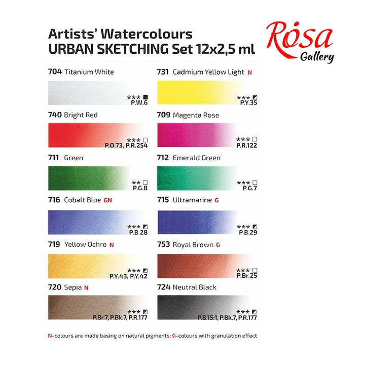 Introduction » Акварелни бои Rosa Gallery - комплект Urban Sketching 12 x 2,5 ml