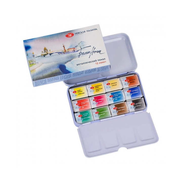 Introduction » Акварелни бои » Комплект акварелни бои White Nights в метална кутия - 12 броя